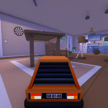 最初は家の中で小さな物しか轢く事ができませんが、レベルアップすると車が強くなっていき、最終的には建物も跳ね飛ばす事ができるようになります。